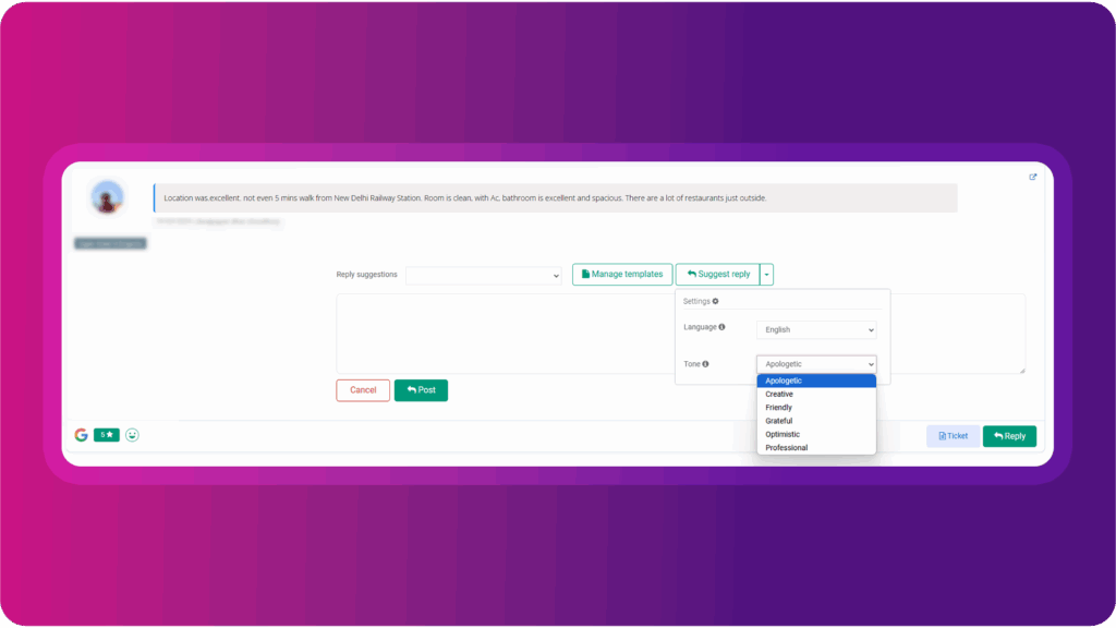 • Create support tickets directly from reviews for faster, organized issue resolution.